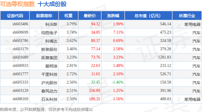可选等权(000073)指数十大成份股详情如下: