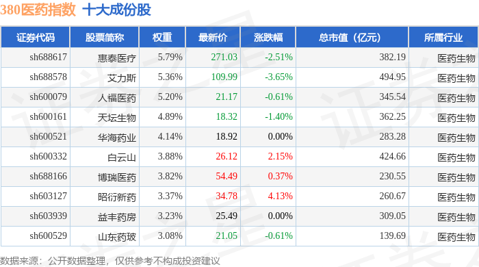 证券之星消息,10月29日,380医药(000109)指数报收于10601.45点,涨0.11%,成交105.81亿元,换手率1.2%。当日该指数成份股中,上涨的有23家,纳微科技以5.59%的涨幅领涨,下跌的有15家,艾力斯以3.65%的跌幅领跌。