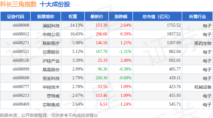 证券之星消息,10月29日,科长三角(000695)指数报收于1086.28点,涨1.2%,成交445.33亿元,换手率2.3%。当日该指数成份股中,上涨的有39家,阿特斯以19.97%的涨幅领涨,下跌的有19家,泽璟制药以12.97%的跌幅领跌。