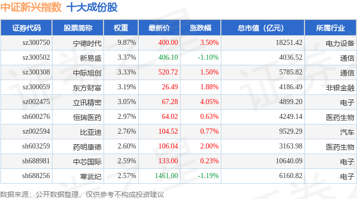 中证新兴(000964)指数十大成份股详情如下: