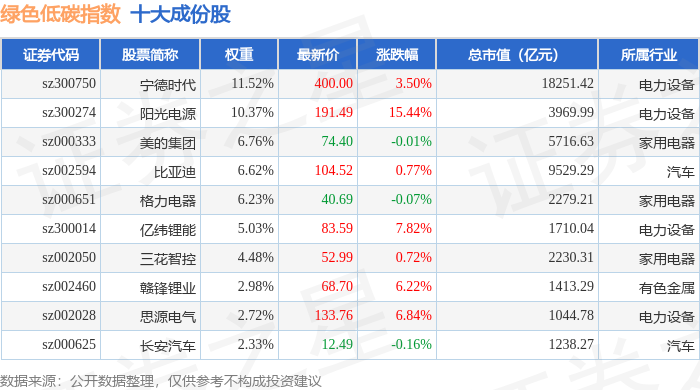 绿色低碳(399258)指数十大成份股详情如下: