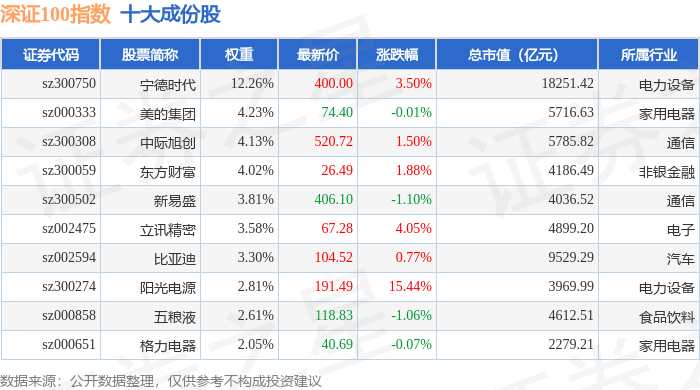 证券之星消息,10月29日,深证100(399330)指数报收于6058.43点,涨1.85%,成交2885.29亿元,换手率1.34%。当日该指数成份股中,上涨的有69家,阳光电源以15.44%的涨幅领涨,下跌的有30家,中兴通讯以6.46%的跌幅领跌。
