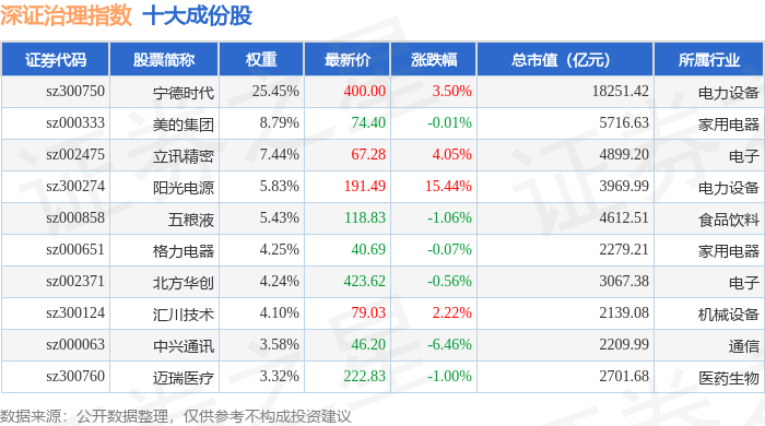 证券之星消息,10月29日,深证治理(399328)指数报收于11522.94点,涨2.3%,成交1217.97亿元,换手率1.8%。当日该指数成份股中,上涨的有26家,阳光电源以15.44%的涨幅领涨,下跌的有14家,中兴通讯以6.46%的跌幅领跌。