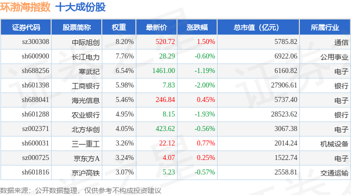 证券之星消息,10月29日,环渤海(399357)指数报收于3593.11点,跌0.28%,成交893.06亿元,换手率0.27%。当日该指数成份股中,上涨的有19家,恒力石化以2.89%的涨幅领涨,下跌的有19家,邮储银行以2.14%的跌幅领跌。