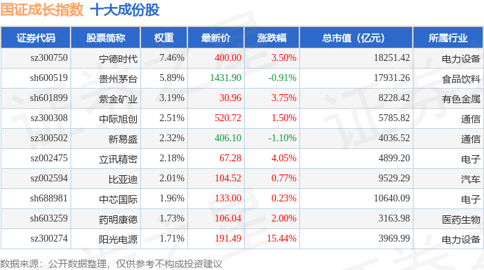 国证成长(399370)指数十大成份股详情如下: