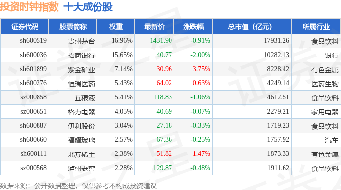 投资时钟(399391)指数十大成份股详情如下: