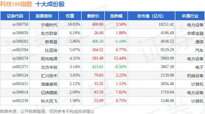 证券之星消息,10月29日,科技100(399608)指数报收于4363.98点,涨2.71%,成交2593.59亿元,换手率2.57%。当日该指数成份股中,上涨的有84家,阳光电源以15.44%的涨幅领涨,下跌的有15家,长盈精密以2.55%的跌幅领跌。