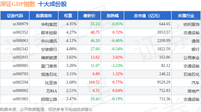 证券之星消息,10月29日,深证GDP(399648)指数报收于12065.77点,涨0.71%,成交2051.99亿元,换手率2.16%。当日该指数成份股中,上涨的有72家,阳光电源以15.44%的涨幅领涨,下跌的有26家,中兴通讯以6.46%的跌幅领跌。