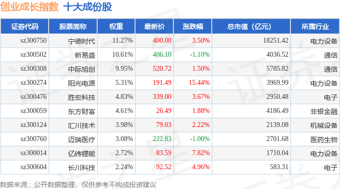 证券之星消息,10月29日,创业成长(399667)指数报收于5647.73点,涨2.72%,成交2174.94亿元,换手率3.34%。当日该指数成份股中,上涨的有34家,阳光电源以15.44%的涨幅领涨,下跌的有16家,长芯博创以3.04%的跌幅领跌。