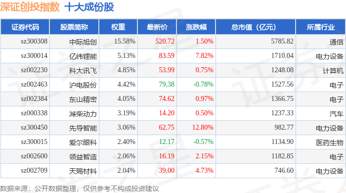 证券之星消息,10月29日,深证创投(399696)指数报收于4221.42点,涨1.84%,成交1440.19亿元,换手率3.65%。当日该指数成份股中,上涨的有83家,联特科技以14.95%的涨幅领涨,下跌的有85家,迦南科技以3.89%的跌幅领跌。