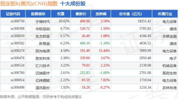 创业板R(美元)(CNH)(470007)指数十大成份股详情如下: