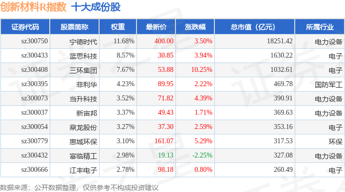 证券之星消息,10月29日,创新材料R(470039)指数报收于5761.25点,涨3.04%,成交595.13亿元,换手率3.82%。当日该指数成份股中,上涨的有40家,三环集团以10.25%的涨幅领涨,下跌的有10家,中简科技以2.68%的跌幅领跌。