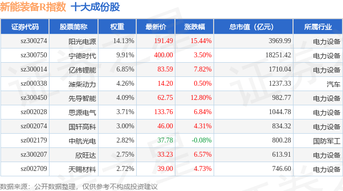 资金流向方面,新能装备R(470043)指数成份股当日主力资金净流入合计80.36亿元,游资资金净流出合计38.36亿元,散户资金净流出合计42.0亿元。成份股资金流向详情见下表: