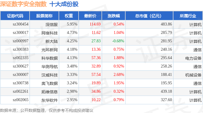 资金流向方面,深证数字安全(970052)指数成份股当日主力资金净流入合计1.38亿元,游资资金净流出合计4.48亿元,散户资金净流入合计3.1亿元。成份股资金流向详情见下表: