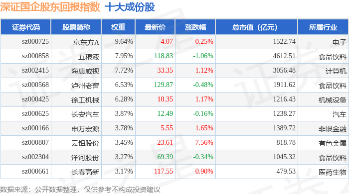 深证国企股东回报(970064)指数十大成份股详情如下: