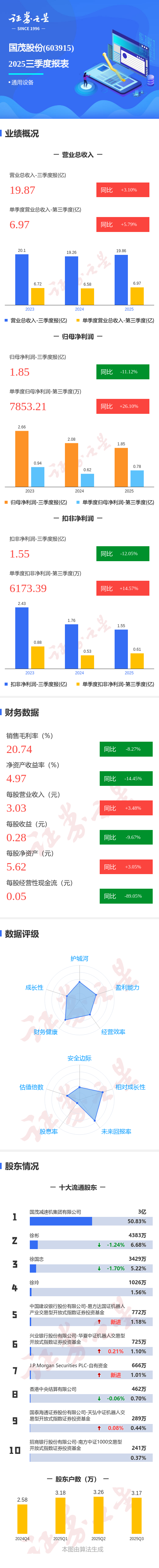 证券之星消息,国茂股份2025年三季报显示,前三季度公司主营收入19.87亿元,同比上升3.1%;归母净利润1.85亿元,同比下降11.13%;扣非净利润1.55亿元,同比下降12.06%;其中2025年第三季度,公司单季度主营收入6.97亿元,同比上升5.79%;单季度归母净利润7853.21万元,同比上升26.1%;单季度扣非净利润6173.39万元,同比上升14.57%;负债率30.07%,投资收益2869.62万元,财务费用-187.38万元,毛利率20.74%。