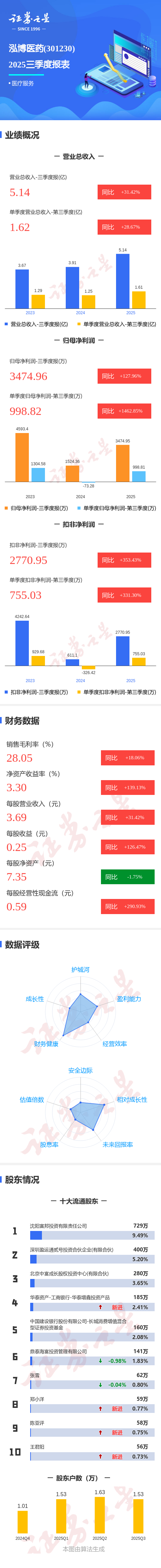 证券之星消息,泓博医药2025年三季报显示,前三季度公司主营收入5.14亿元,同比上升31.43%;归母净利润3474.96万元,同比上升127.96%;扣非净利润2770.95万元,同比上升353.43%;其中2025年第三季度,公司单季度主营收入1.62亿元,同比上升28.67%;单季度归母净利润998.82万元,同比上升1462.85%;单季度扣非净利润755.03万元,同比上升331.3%;负债率21.4%,投资收益10.54万元,财务费用350.73万元,毛利率28.05%。