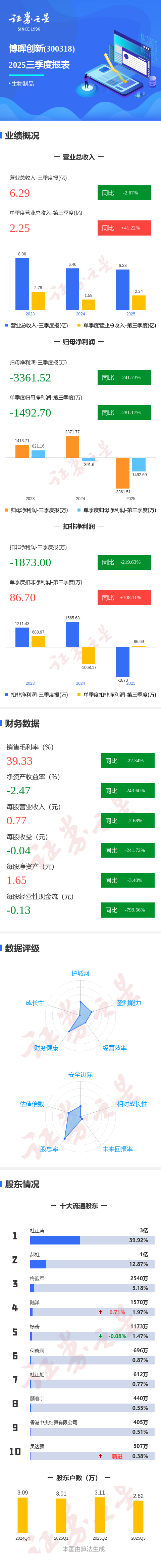 证券之星消息,博晖创新2025年三季报显示,前三季度公司主营收入6.29亿元,同比下降2.68%;归母净利润-3361.52万元,同比下降241.73%;扣非净利润-1873.0万元,同比下降219.63%;其中2025年第三季度,公司单季度主营收入2.25亿元,同比上升41.22%;单季度归母净利润-1492.7万元,同比下降281.18%;单季度扣非净利润86.7万元,同比上升108.12%;负债率47.1%,投资收益-10.3万元,财务费用2315.48万元,毛利率39.33%。