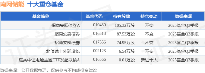 持有南网储能最多的基金为招商安阳债券A,目前规模为23.33亿元,最新净值1.0571(10月29日),较上一交易日上涨0.24%,近一年上涨5.08%。该基金现任基金经理为尹晓红 蔡振。