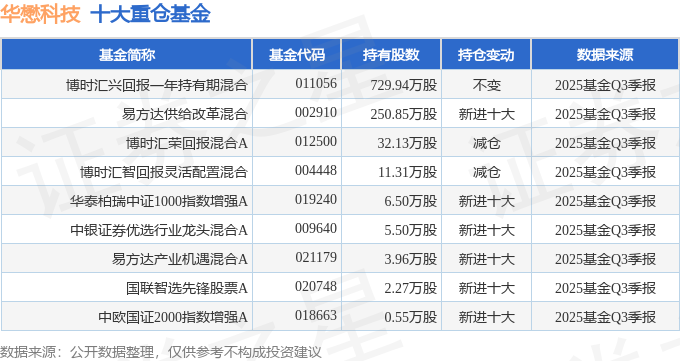 持有华懋科技最多的基金为博时汇兴回报一年持有期混合,目前规模为58.18亿元,最新净值1.0533(10月29日),较上一交易日上涨1.23%,近一年上涨48.96%。该基金现任基金经理为吴渭。