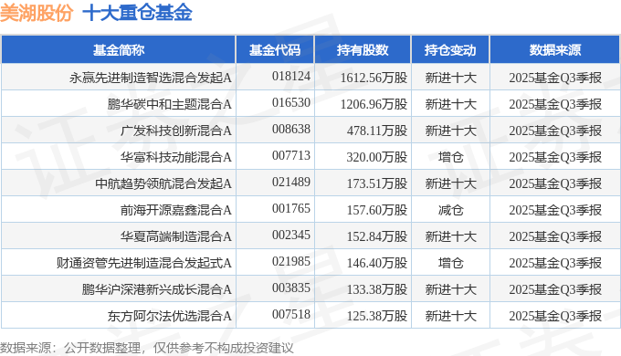 持有美湖股份最多的基金为永赢先进制造智选混合发起A,目前规模为46.97亿元,最新净值2.3726(10月29日),较上一交易日上涨1.06%,近一年上涨141.54%。该基金现任基金经理为张璐。