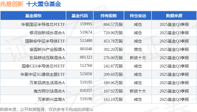持有兆易创新最多的基金为华夏国证半导体芯片ETF,目前规模为286.01亿元,最新净值1.8792(10月29日),较上一交易日上涨0.07%,近一年上涨59.42%。该基金现任基金经理为赵宗庭。