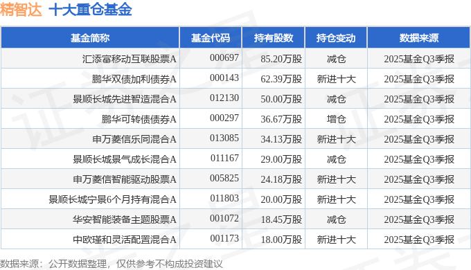 持有精智达最多的基金为汇添富移动互联股票A,目前规模为32.01亿元,最新净值2.74(10月29日),较上一交易日上涨0.88%,近一年上涨85.26%。该基金现任基金经理为沈若雨。