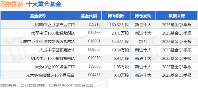 持有四维图新最多的基金为招商中证卫星产业ETF,目前规模为3.86亿元,最新净值1.2567(10月29日),较上一交易日上涨1.24%。该基金现任基金经理为许荣漫。