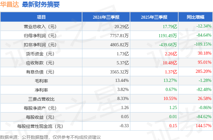 据证券之星公开数据整理,近期华昌达(300278)发布2025年三季报。截至本报告期末,公司营业总收入17.79亿元,同比下降12.34%,归母净利润1191.49万元,同比下降84.64%。按单季度数据看,第三季度营业总收入7.8亿元,同比上升20.9%,第三季度归母净利润927.85万元,同比上升147.48%。本报告期华昌达应收账款上升,应收账款同比增幅达95.01%。