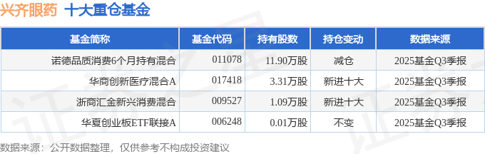 持有兴齐眼药最多的基金为诺德品质消费6个月持有混合,目前规模为2.76亿元,最新净值0.7567(10月29日),较上一交易日上涨1.31%,近一年上涨16.36%。该基金现任基金经理为Yi Xie。