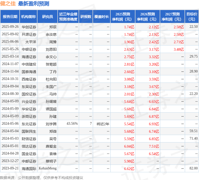 以下是详细的盈利预测信息: