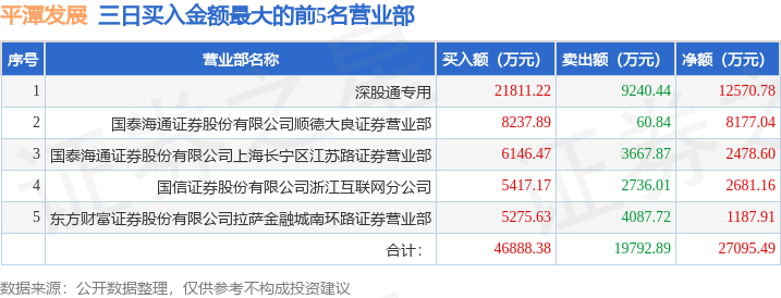 从龙虎榜公布的三日买卖数据来看,机构合计净卖出4966.86万元,北向资金合计净买入1.26亿元。章盟主、上海超短帮等知名游资榜上有名。(知名游资章盟主一般指国泰海通证券股份有限公司上海长宁区江苏路证券营业部席位、知名游资上海超短帮一般指国泰海通证券股份有限公司上海静安区新闸路证券营业部席位,根据市场资料整理,仅供参考)
