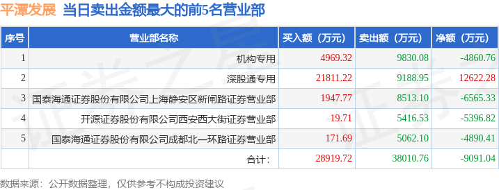证券之星消息,沪深交易所2025年10月30日公布的交易公开信息显示,平潭发展(000592)因连续三个交易日内,涨幅偏离值累计达到20%的证券,日换手率达到20%的前5只证券登上龙虎榜。此次是近5个交易日内第2次上榜。