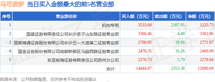 从龙虎榜公布的当日买卖数据来看,机构合计净买入1225.73万元。
