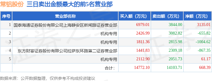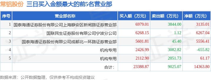 证券之星消息,沪深交易所2025年10月30日公布的交易公开信息显示,常铝股份(002160)因连续三个交易日内,涨幅偏离值累计达到20%的证券登上龙虎榜。此次是近5个交易日内第3次上榜。