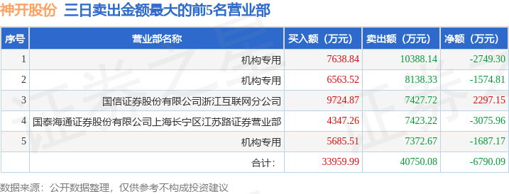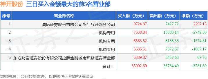 证券之星消息,沪深交易所2025年10月30日公布的交易公开信息显示,神开股份(002278)因连续三个交易日内,跌幅偏离值累计达到20%的证券,日换手率达到20%的前5只证券登上龙虎榜。此次是近5个交易日内第5次上榜。