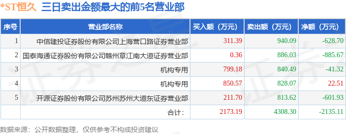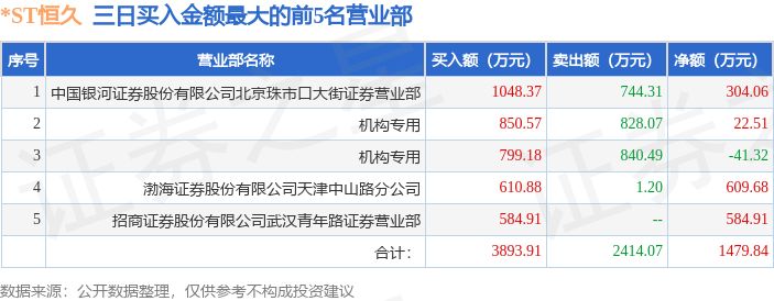 证券之星消息,沪深交易所2025年10月30日公布的交易公开信息显示,*ST恒久(002808)因连续三个交易日内,涨幅偏离值累计达到12%的ST证券、*ST证券和未完成股改证券登上龙虎榜。此次是近5个交易日内第1次上榜。