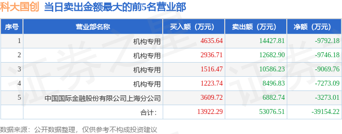 证券之星消息,沪深交易所2025年10月30日公布的交易公开信息显示,科大国创(300520)因日换手率达到30%的前5只证券登上龙虎榜。此次是近5个交易日内第4次上榜。