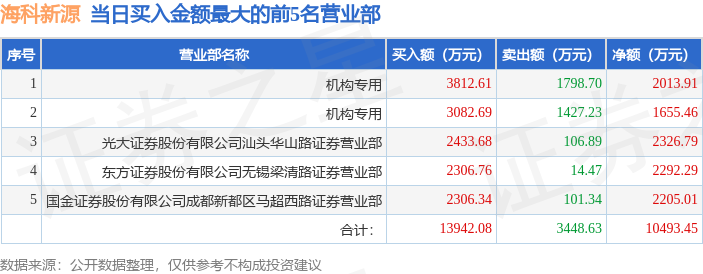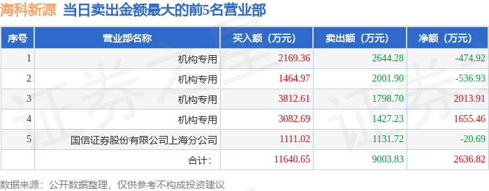 证券之星消息,沪深交易所2025年10月30日公布的交易公开信息显示,海科新源(301292)因日换手率达到30%的前5只证券登上龙虎榜。此次是近5个交易日内第1次上榜。