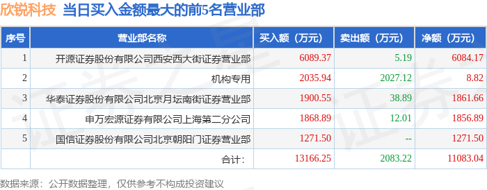 证券之星消息,沪深交易所2025年10月30日公布的交易公开信息显示,欣锐科技(300745)因日涨幅达到15%的前5只证券登上龙虎榜。此次是近5个交易日内第1次上榜。
