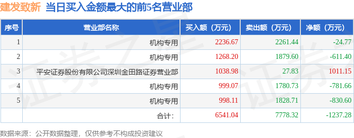 证券之星消息,沪深交易所2025年10月30日公布的交易公开信息显示,建发致新(301584)因日换手率达到30%的前5只证券登上龙虎榜。此次是近5个交易日内第4次上榜。