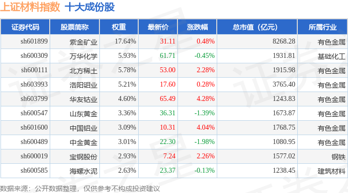 证券之星消息,10月30日,上证材料(000033)指数报收于3402.38点,涨0.13%,成交999.05亿元,换手率2.73%。当日该指数成份股中,上涨的有20家,鄂尔多斯以9.97%的涨幅领涨,下跌的有29家,圣泉集团以5.59%的跌幅领跌。