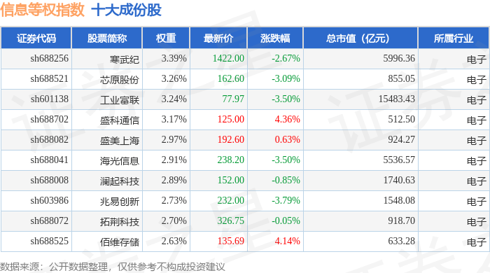 信息等权(000077)指数十大成份股详情如下: