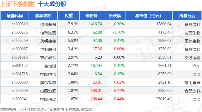 证券之星消息,10月30日,上证下游(000096)指数报收于4360.95点,跌1.02%,成交1047.23亿元,换手率0.87%。当日该指数成份股中,上涨的有45家,中国外运以7.4%的涨幅领涨,下跌的有96家,药明康德以8.47%的跌幅领跌。