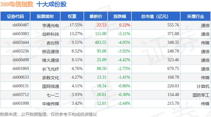 380电信(000112)指数十大成份股详情如下: