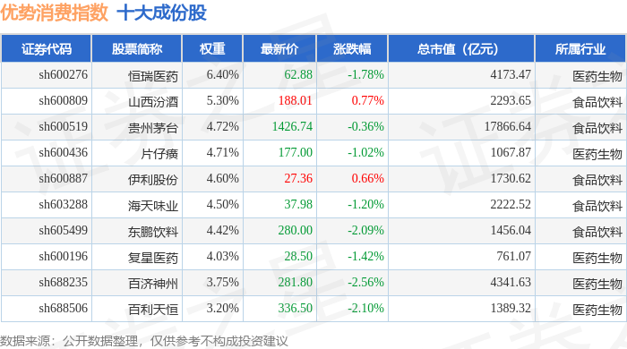 证券之星消息,10月30日,优势消费(000147)指数报收于6986.69点,跌0.81%,成交291.2亿元,换手率1.14%。当日该指数成份股中,上涨的有15家,迎驾贡酒以2.59%的涨幅领涨,下跌的有29家,安琪酵母以5.2%的跌幅领跌。