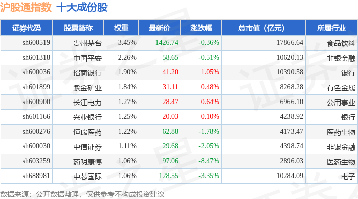 沪股通(000159)指数十大成份股详情如下:
