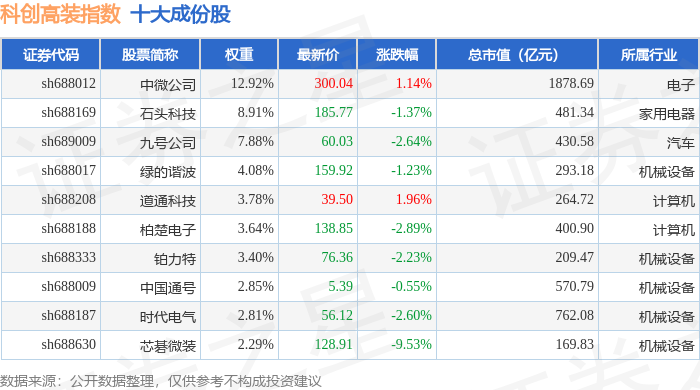 科创高装(000687)指数十大成份股详情如下: