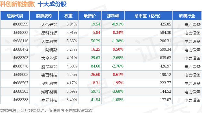 证券之星消息,10月30日,科创新能(000692)指数报收于1199.72点,跌0.01%,成交246.29亿元,换手率3.54%。当日该指数成份股中,上涨的有20家,万润新能以10.94%的涨幅领涨,下跌的有22家,微导纳米以8.19%的跌幅领跌。