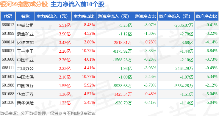 资金流向方面,银河99(000959)指数成份股当日主力资金净流出合计226.94亿元,游资资金净流入合计85.56亿元,散户资金净流入合计141.38亿元。成份股资金流向详情见下表: